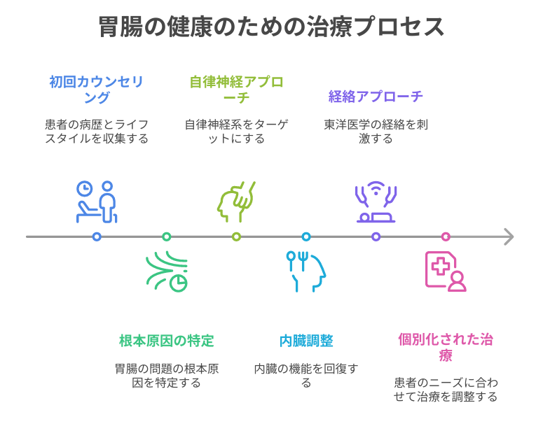 当院では、初回のカウンセリングと検査に十分な時間をかけ、胃腸の不調の根本的な原因を把握した上で施術を開始します。