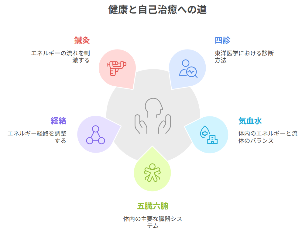 これらのバランスの乱れが体の不調の原因であると考え、気血水・五臓六腑が整った状態が、健康状態が高く自己治癒力に優れた状態となり、回復に向かっていきます。